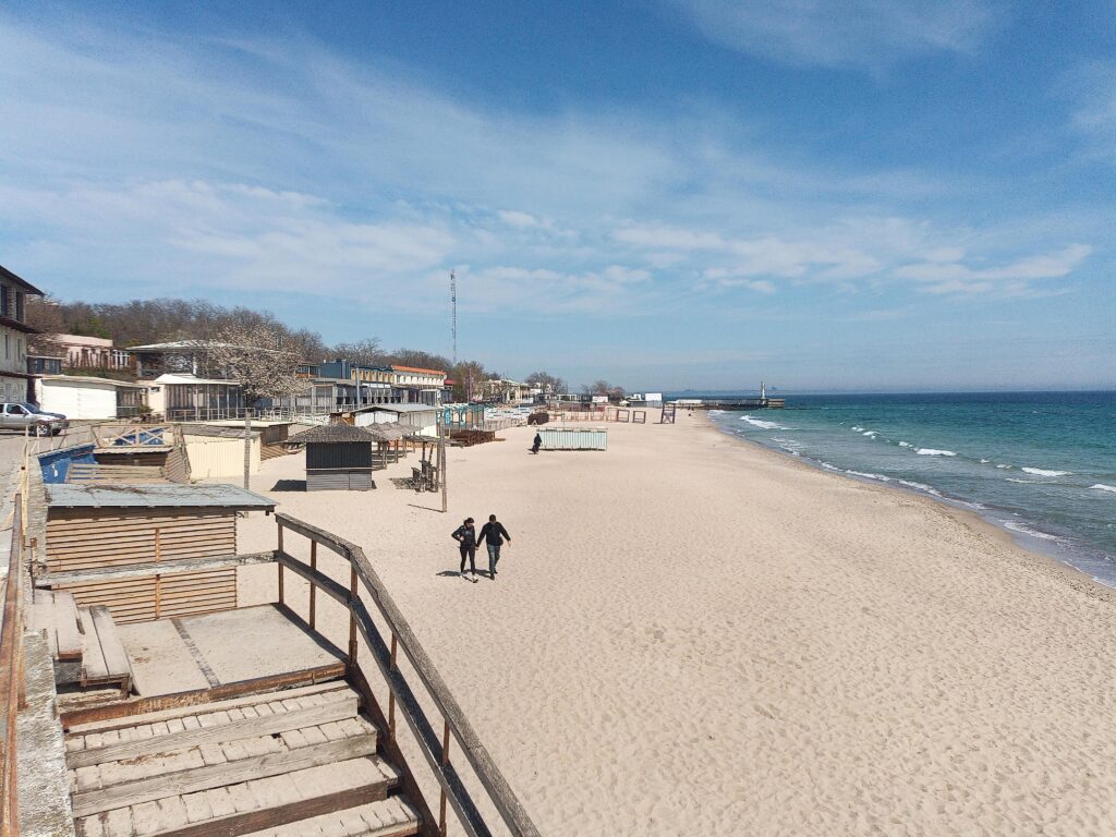 Auf der Promenade oberhalb des Strands sehen wir auch auch mehrere „Technical“ – Pickups mit großen Maschinengewehren. Sie gehören zur mehrfach gestaffelten Luftverteidigung und holen (vor allem nachts) die russischen Shahed-Drohnen vom Himmel.