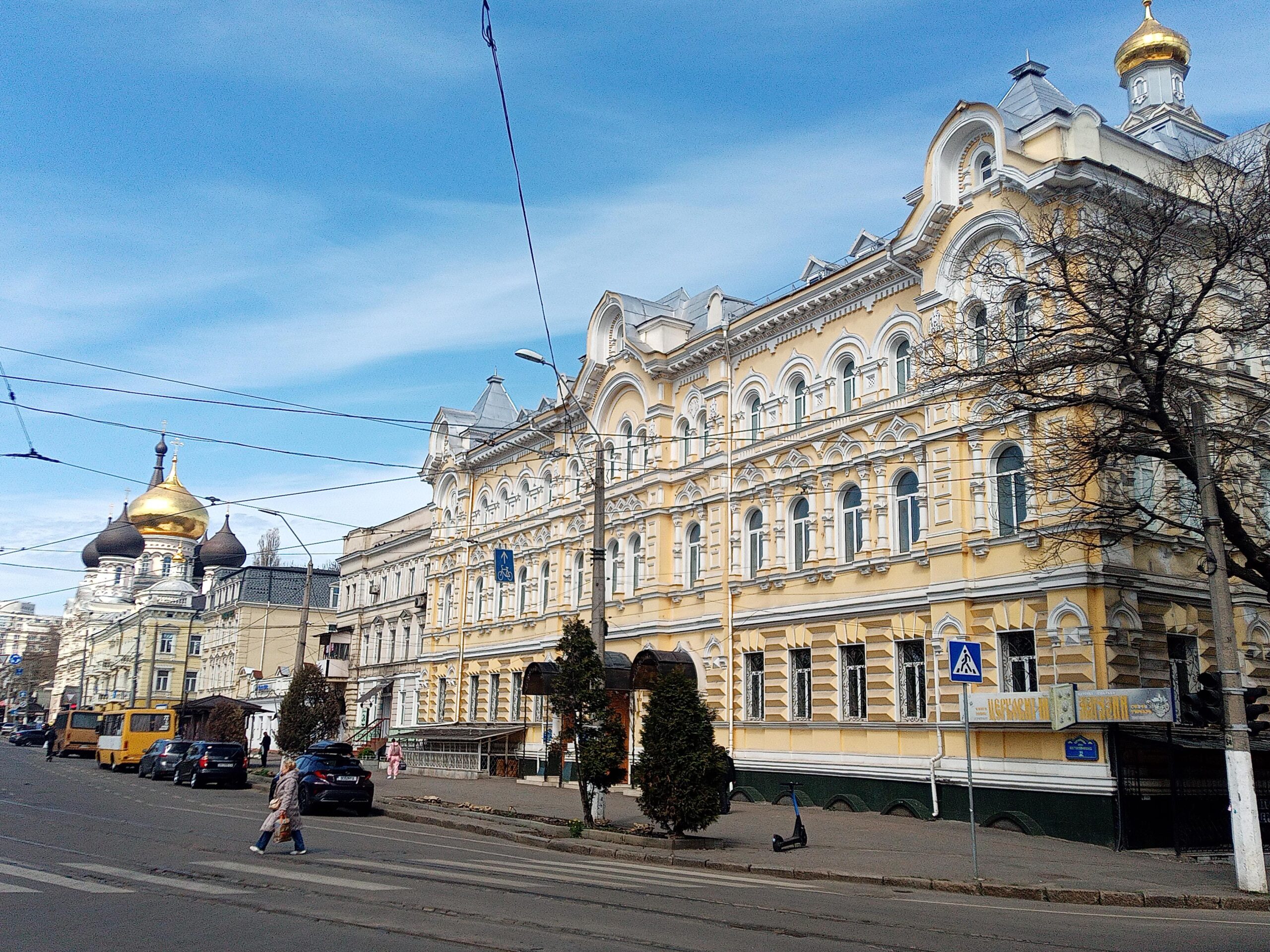 Der Nacht war irritierend ruhig. Es gab nur einen einzigen Sirenenalarm und die einsame Drohne wurde offensichtlich schon weit außerhalb der Stadt abgeschossen. Und auch den gesamten Tag über wird es friedlich bleiben. Vermutlich haben die Russen bei ihrem Großangriff vorletzte Nacht alles rausgeschossen, was sie da hatten, und müssen jetzt erst mal auf Nachschub warten. Das Wetter ist großartig, und wir beschließen, die Stadt per Fahrrad zu erkunden.