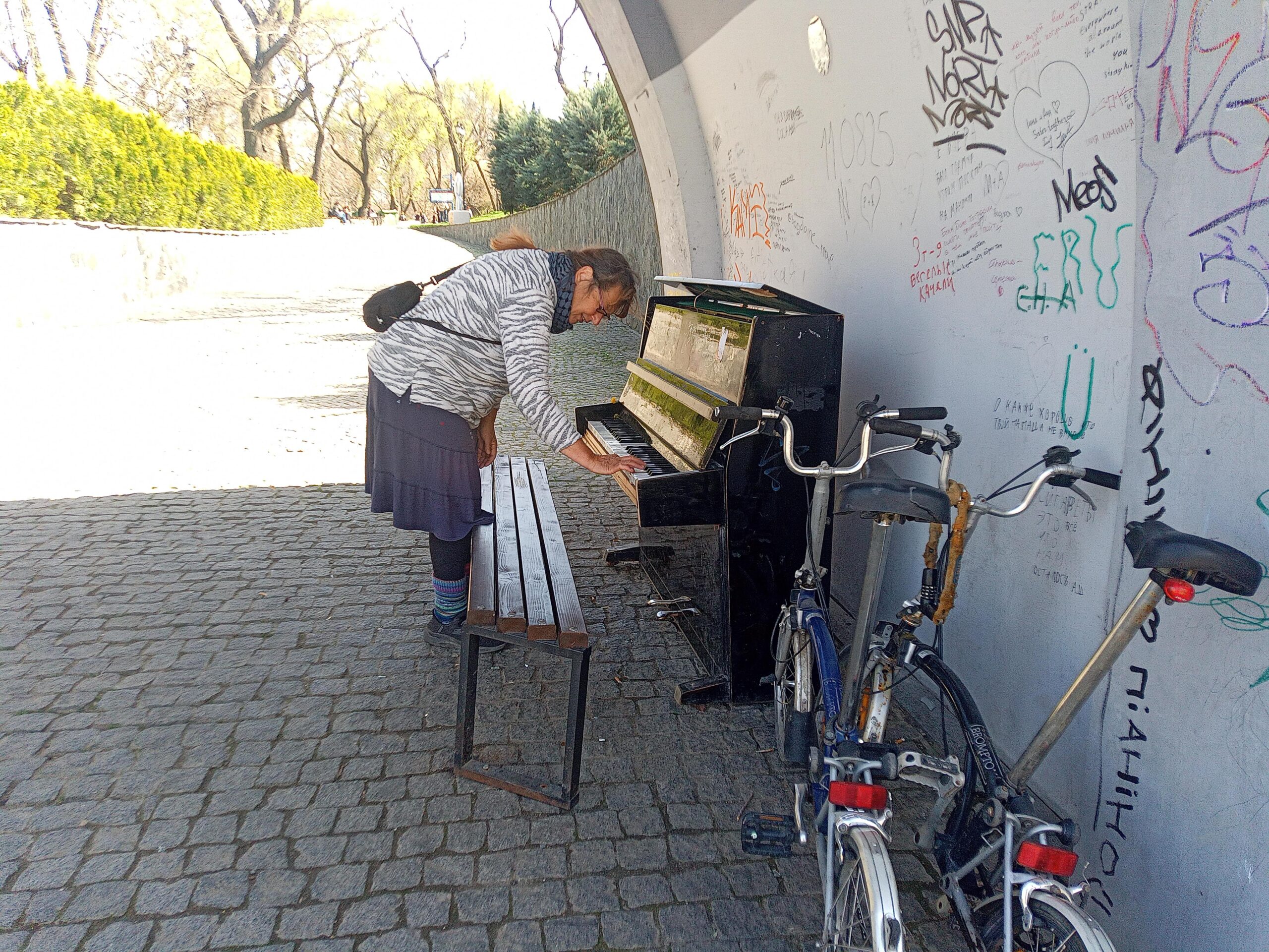 Deutlich mehr Vergnügen hat sie an dem öffentlichen, aber leider verstimmten Klavier, das im „Istanbuler Park“, gleich neben der Potemkinschen Treppe steht.