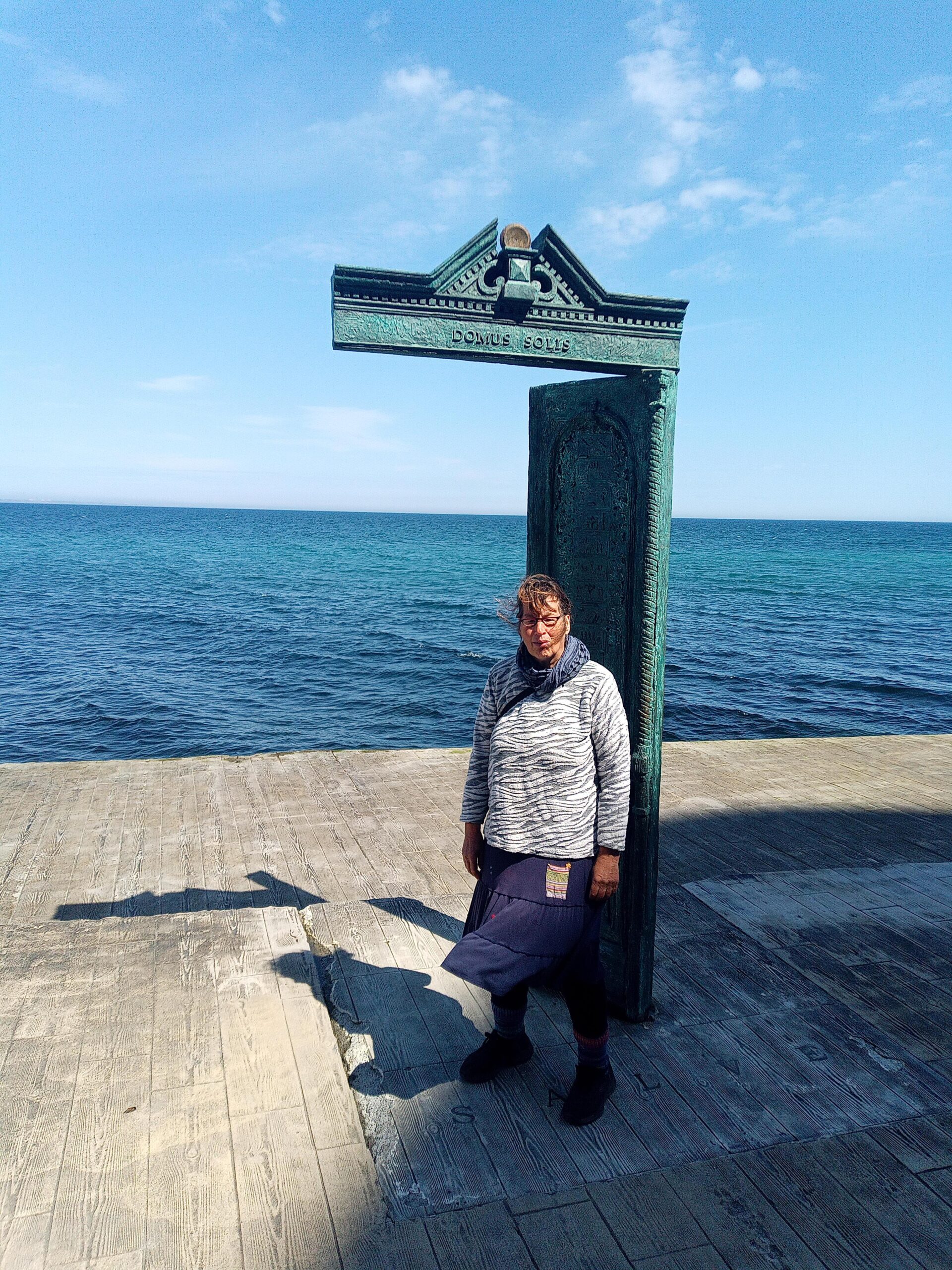 Die Skulptur „Haus der Sonne“, stellt die Tür dar, durch den jeden Morgen die Sonne in die Stadt kommt. Sie scheint einer der heißesten Photospots der Stadt zu sein, den es standen mehrere Frauen an, um sich in der Tür photographieren zu lassen. Bina wollte kein Standardbild haben und hat sich als einzige nicht malerisch in den Rahmen gelehnt.